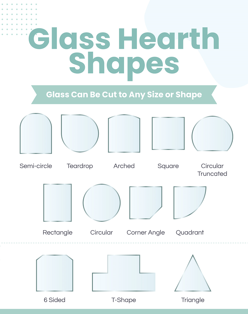 We offer our customers a huge array of designs & shapes to choose from. Our glass hearths are available in almost any shape and colour imaginable, including quadrant, curved designs, and teardrop shaped. We can also provide homeowners with semi-circle and circular shapes, as well as clear, white and black finishes, ensuring no matter your décor, you can always find the perfect match! We also provide tinted finishes such as grey / smoked and bronze tinted glass for hearths. No matter the shape or size, we provide our glass hearths with the required 12mm thickness.
