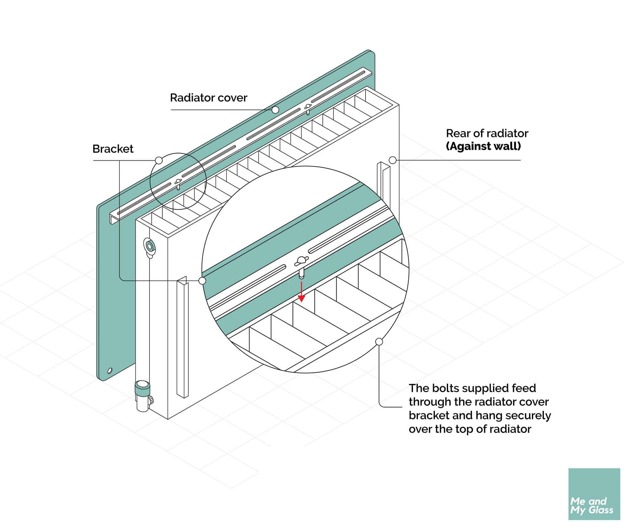 - Position the glass centrally over the radiator.
