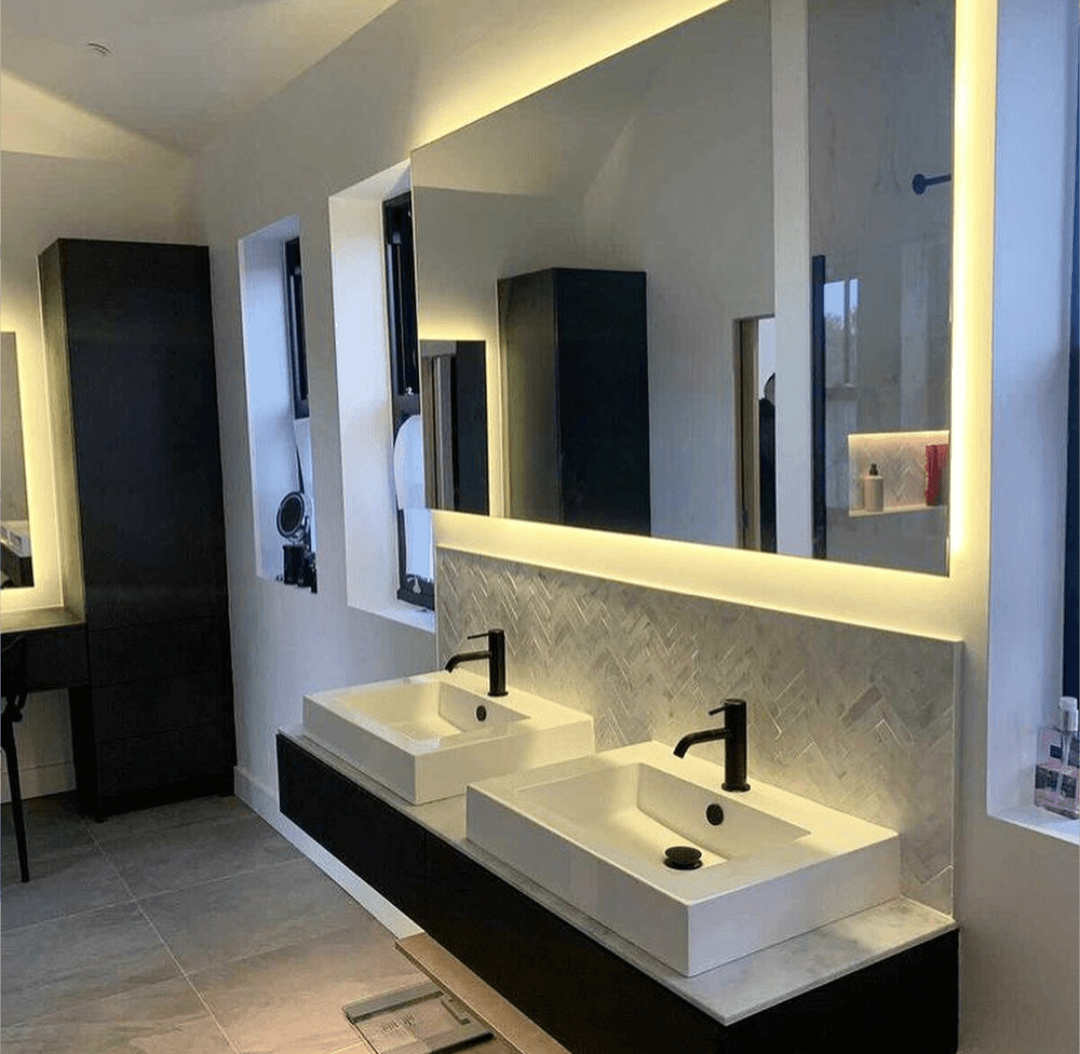 (A) It’s just a case of connecting the power wire from the mirror to the mains wire in the customer’s desired location. Most have this connected to a light switch or something like that. So when they switch the bathroom light on to enter the room, it switches the LED mirror on too.