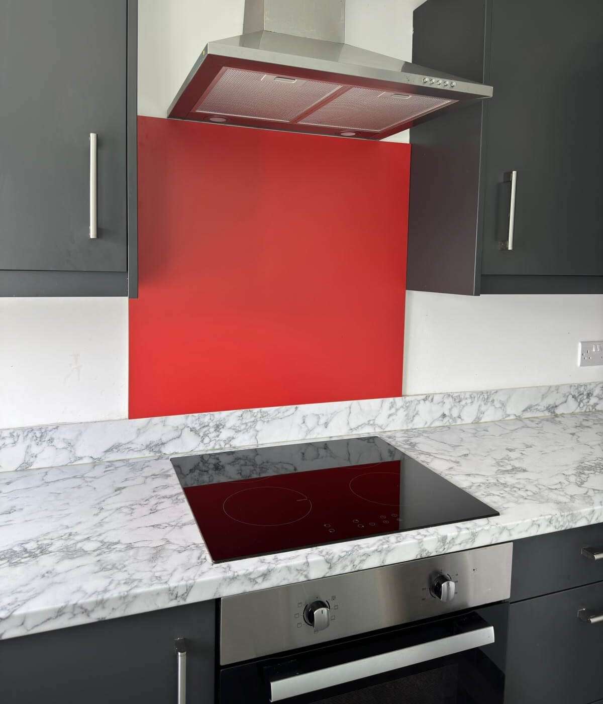Splashbacks for kitchens are not only an aesthetic addition to any home, but they are also a highly functional solution. Made from toughened glass and fully heat resistant, our red glass cooker splashback solutions are the perfect addition to any home.
