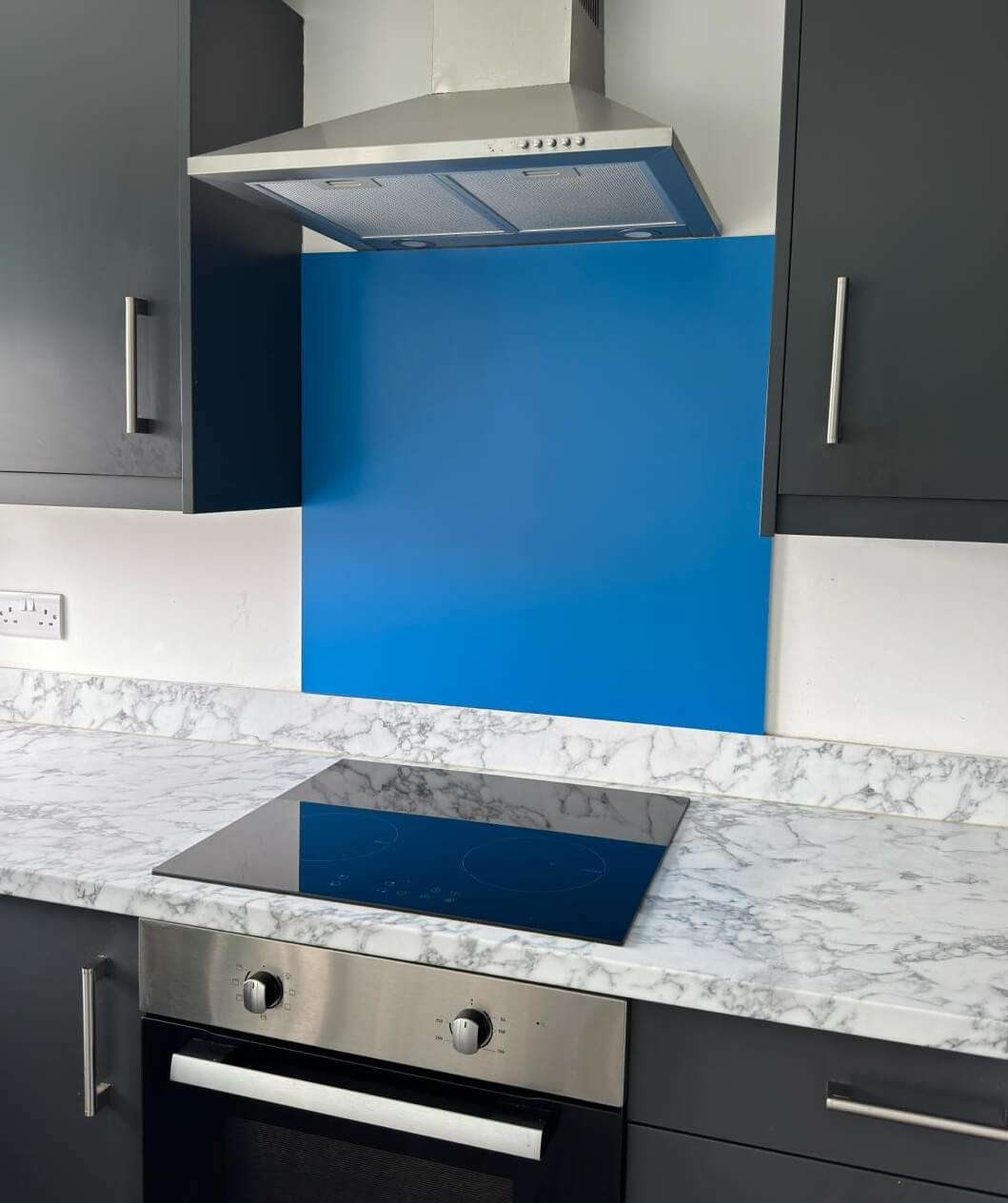 We are able to offer a wide range of blue glass splashbacks for our customers, coming in a large collection of colours. Our blue glass kitchen splashbacks are available in a range of shades, including navy, duck egg, dark blue and many more, ensuring that there is always a splashback to meet your décor.