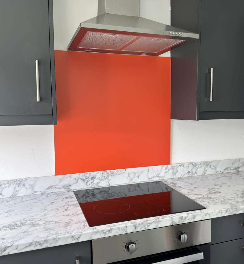 All of our orange glass splashback solutions are made to measure and expertly cut to size, ensuring they perfectly fit your kitchen. We pride ourselves on creating bespoke solutions for your home, so if you are looking for an orange glass cooker splashback, get in touch with our team today.